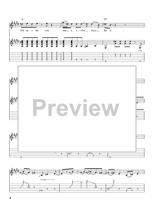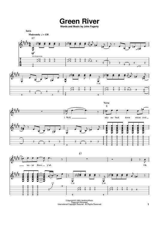Digital Sheet Music for Green River by John Fogerty, Creedence Clearwater Revival scored for Guitar Tab; id:397509