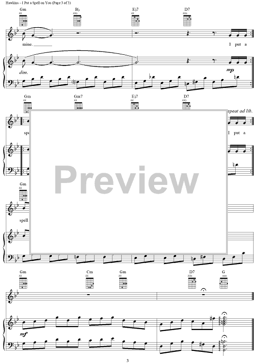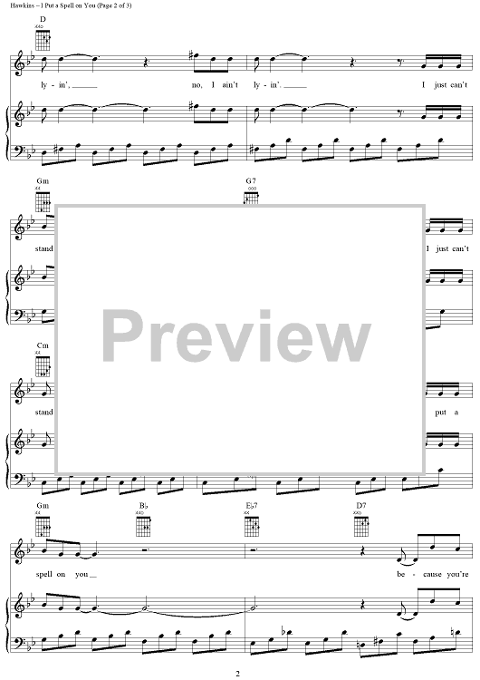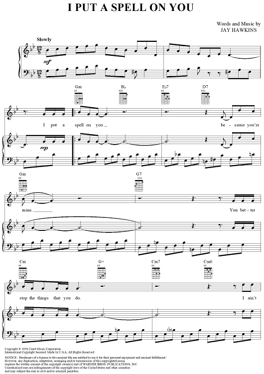Digital Sheet Music for I Put A Spell On You by Screamin' Jay Hawkins, Creedence Clearwater Revival scored for Piano/Vocal/Chords; id:241675