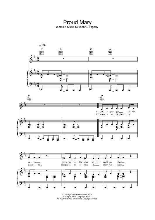 Digital Sheet Music for Proud Mary by John Fogerty, Creedence Clearwater Revival, Ike & Tina Turner scored for Piano/Vocal/Chords; id:387859
