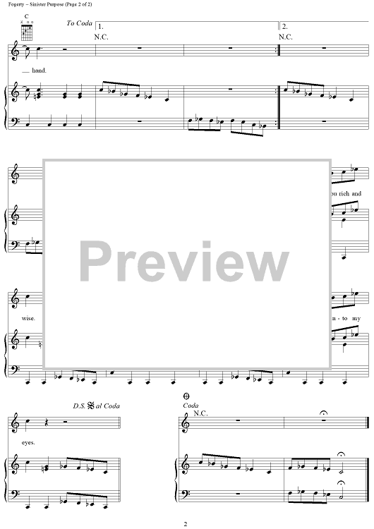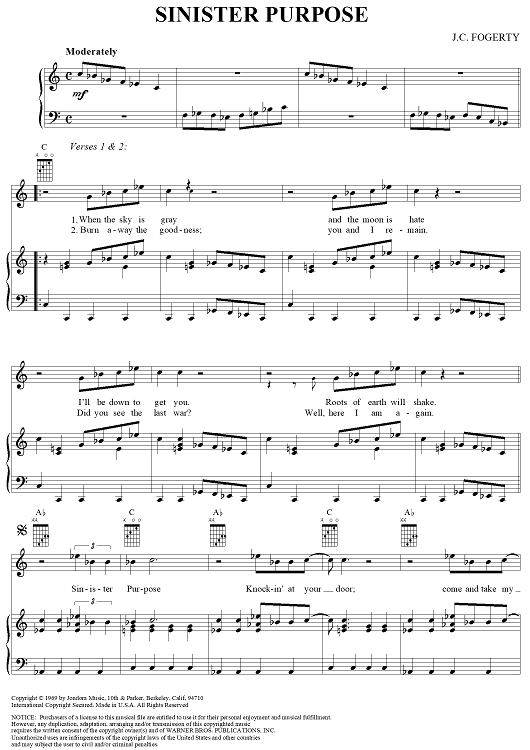 Digital Sheet Music for Sinister Purpose by John Fogerty, Creedence Clearwater Revival scored for Piano/Vocal/Chords; id:269495