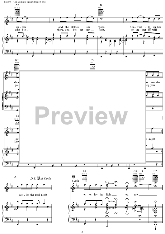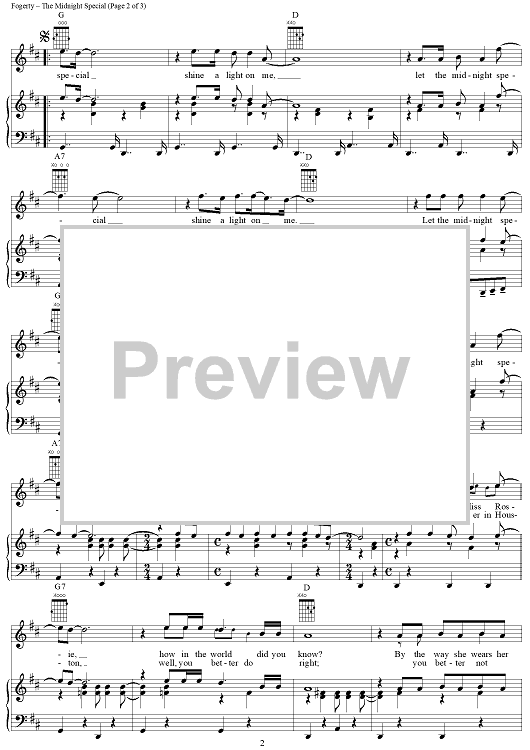 Digital Sheet Music for The Midnight Special by John Fogerty, Creedence Clearwater Revival scored for Piano/Vocal/Chords; id:269652