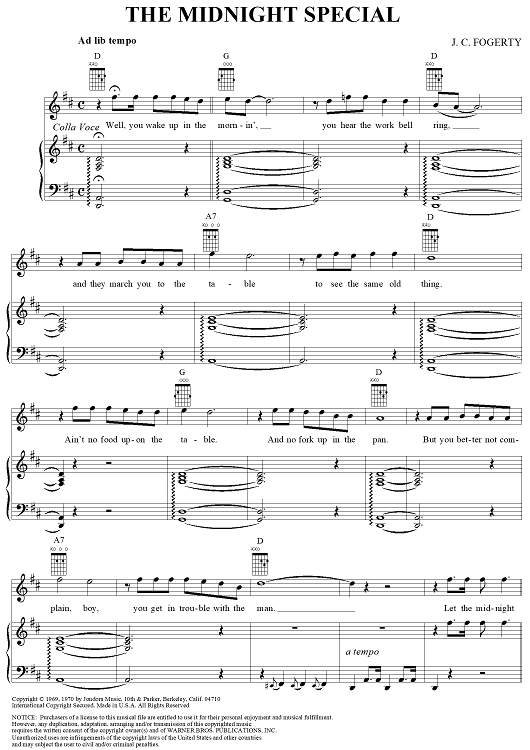 "The Midnight Special" Sheet Music by Creedence Clearwater Revival