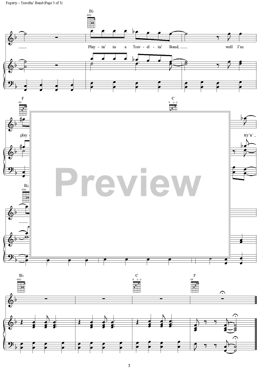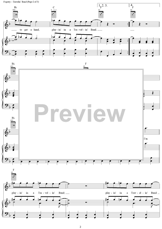 Digital Sheet Music for Travelin' Band by John Fogerty, Creedence Clearwater Revival scored for Piano/Vocal/Chords; id:269511