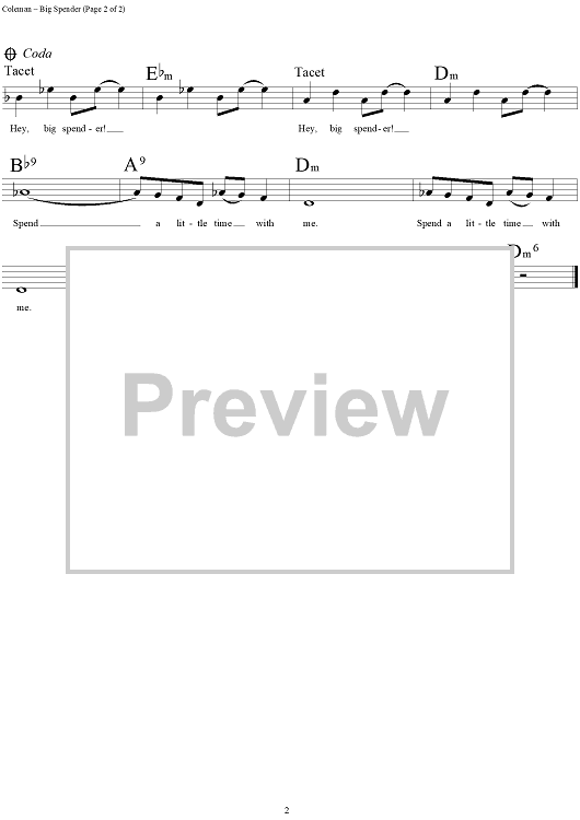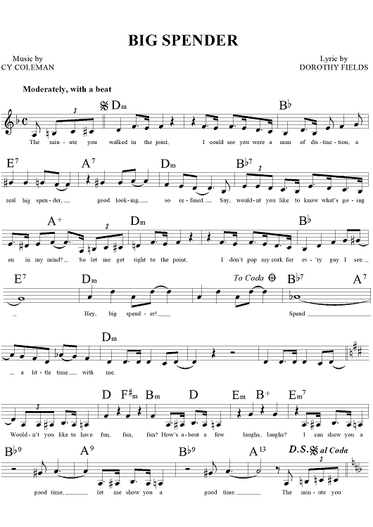 Digital Sheet Music for Big Spender by Cy Coleman, Dorothy Fields, Peggy Lee scored for Lead Sheet; id:109515