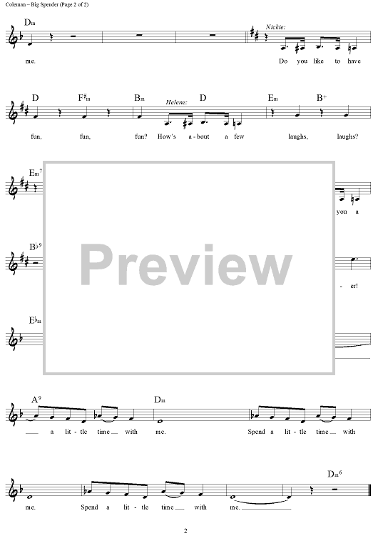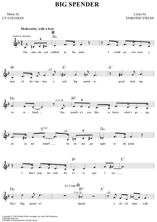 Digital Sheet Music for Big Spender by Cy Coleman, Dorothy Fields scored for Lead Sheet; id:457829