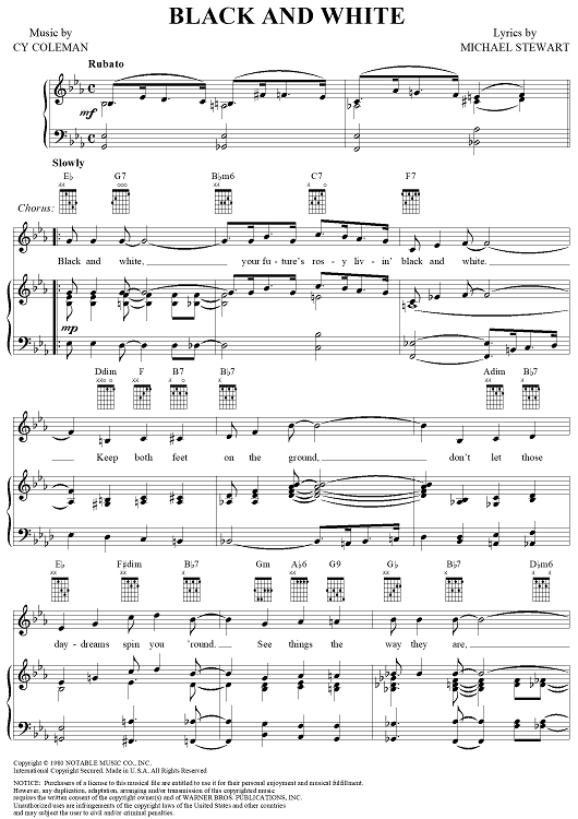 Digital Sheet Music for Black and White by Cy Coleman, Michael Stewart scored for Piano/Vocal/Chords; id:314552