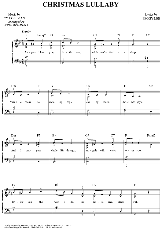Digital Sheet Music for Christmas Lullaby by Cy Coleman, Peggy Lee, John Brimhall scored for Easy Piano/Vocal/Chords; id:449769