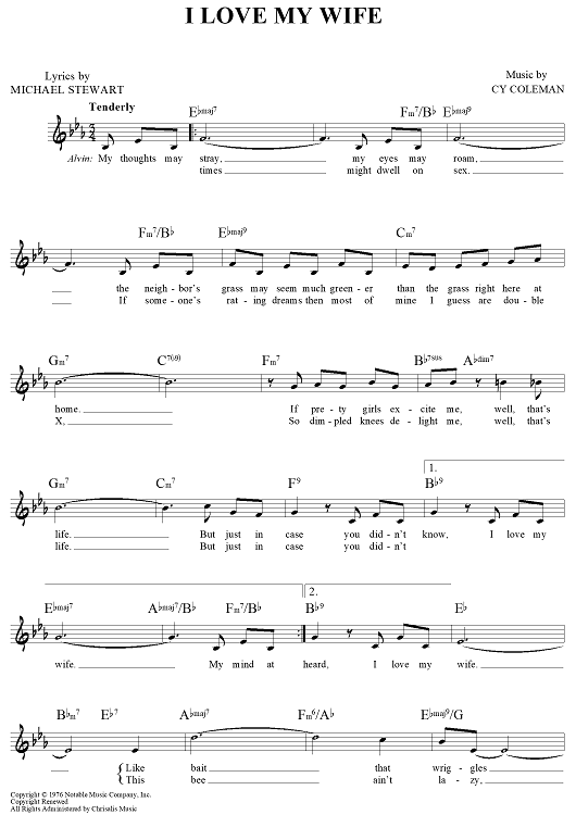 Digital Sheet Music for I Love My Wife by Cy Coleman, Michael Stewart scored for Lead Sheet; id:447259