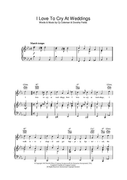 Digital Sheet Music for I Love To Cry At Weddings by Cy Coleman, Dorothy Fields scored for Piano/Vocal/Chords; id:388355