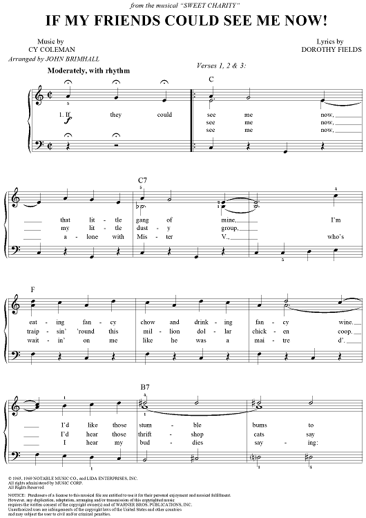 Digital Sheet Music for If My Friends Could See Me Now! by Cy Coleman, Dorothy Fields, Shirley MacLaine, John Brimhall scored for Easy Piano/Vocal; id:120630