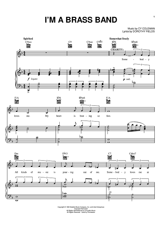 Digital Sheet Music for I'm A Brass Band by Cy Coleman, Dorothy Fields scored for Piano/Vocal/Chords; id:402122