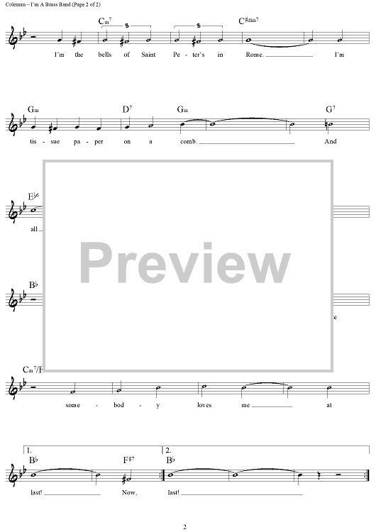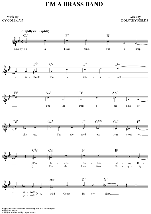 Digital Sheet Music for I'm A Brass Band by Cy Coleman, Dorothy Fields scored for Lead Sheet; id:457831