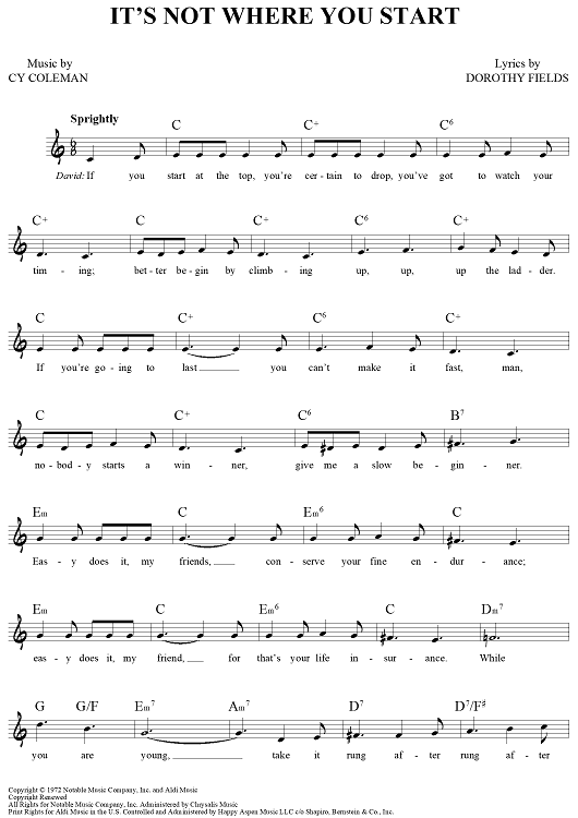 Digital Sheet Music for It's Not Where You Start by Cy Coleman, Dorothy Fields scored for Lead Sheet; id:457093