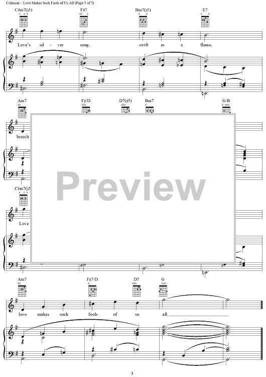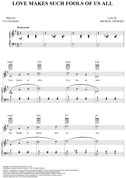 Digital Sheet Music for Love Makes Such Fools of Us All by Cy Coleman, Michael Stewart scored for Piano/Vocal/Chords; id:272361
