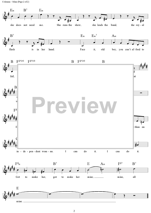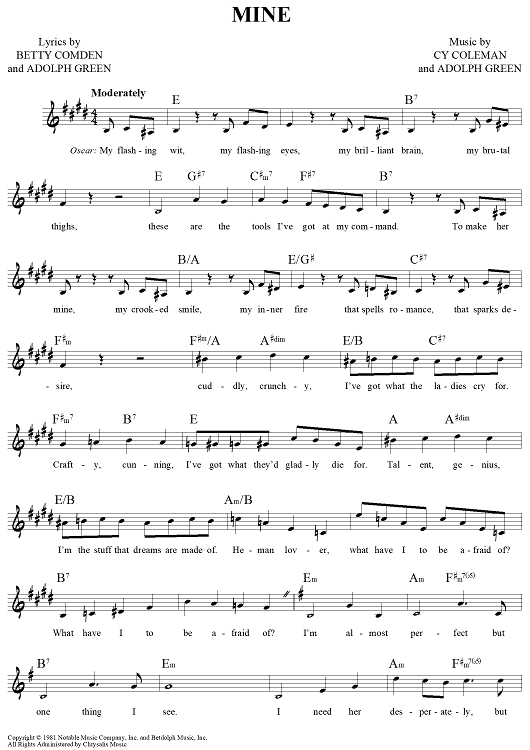 Digital Sheet Music for Mine by Cy Coleman, Betty Comden, Adolph Green scored for Lead Sheet; id:456958