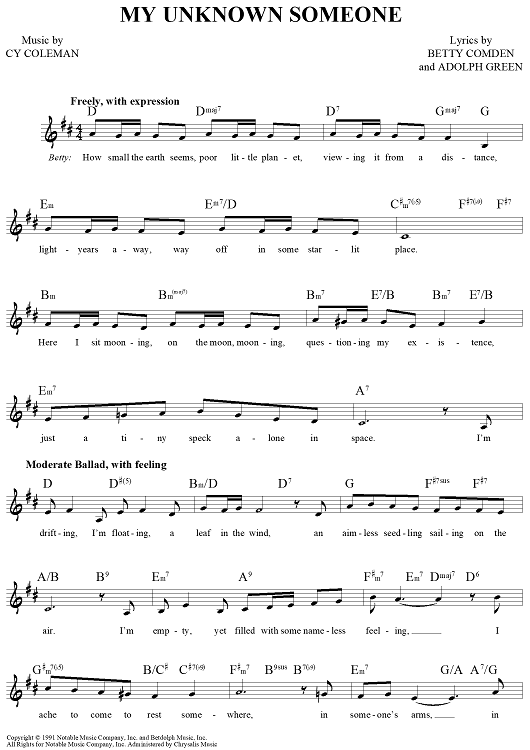 Digital Sheet Music for My Unknown Someone by Cy Coleman, Betty Comden, Adolph Green scored for Lead Sheet; id:461063