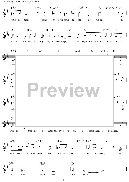 "My Unknown Someone" Sheet Music by Cy Coleman