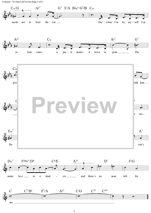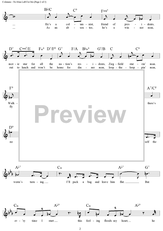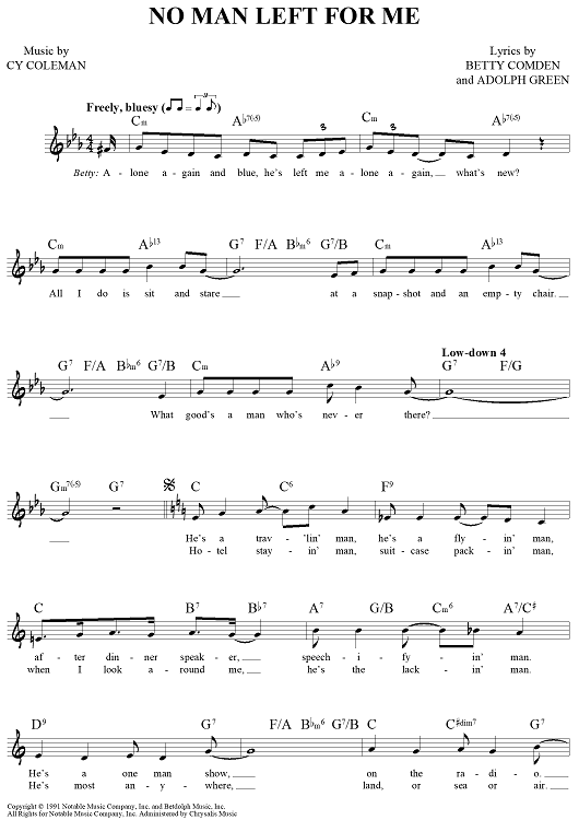 Digital Sheet Music for No Man Left For Me by Cy Coleman, Betty Comden, Adolph Green scored for Lead Sheet; id:461064