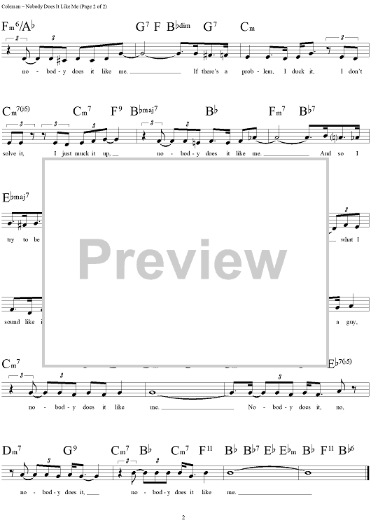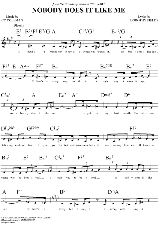 Digital Sheet Music for Nobody Does It Like Me by Cy Coleman, Dorothy Fields scored for Lead Sheet; id:272391