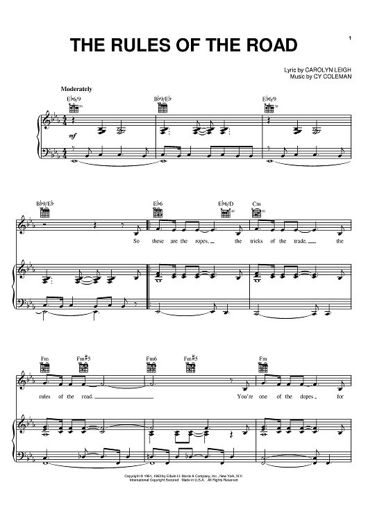 Digital Sheet Music for Rules Of The Road by Cy Coleman, Carolyn Leigh, Tony Bennett, Rosemary Clooney scored for Piano/Vocal/Chords; id:374411