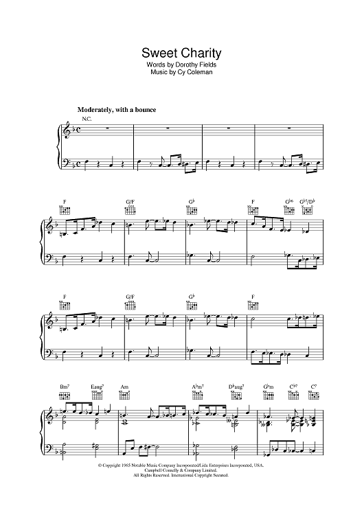 Digital Sheet Music for Sweet Charity by Cy Coleman, Dorothy Fields scored for Piano/Vocal/Chords; id:394994