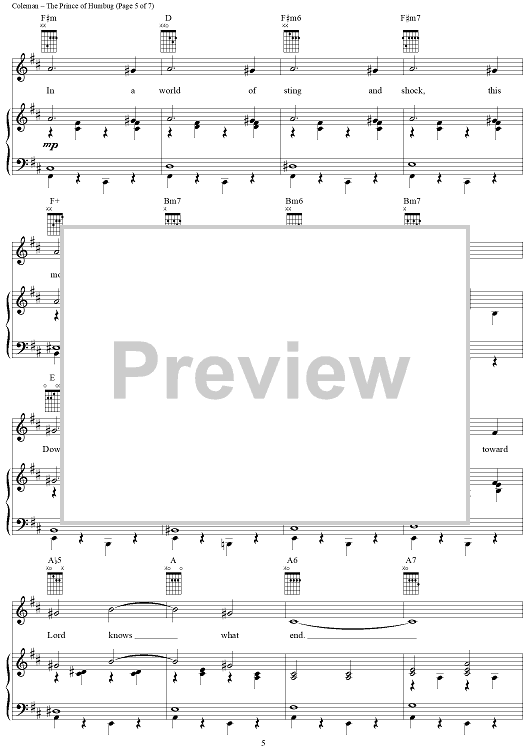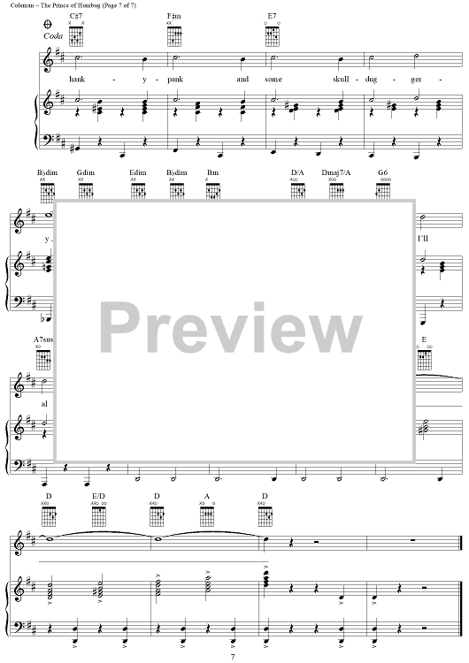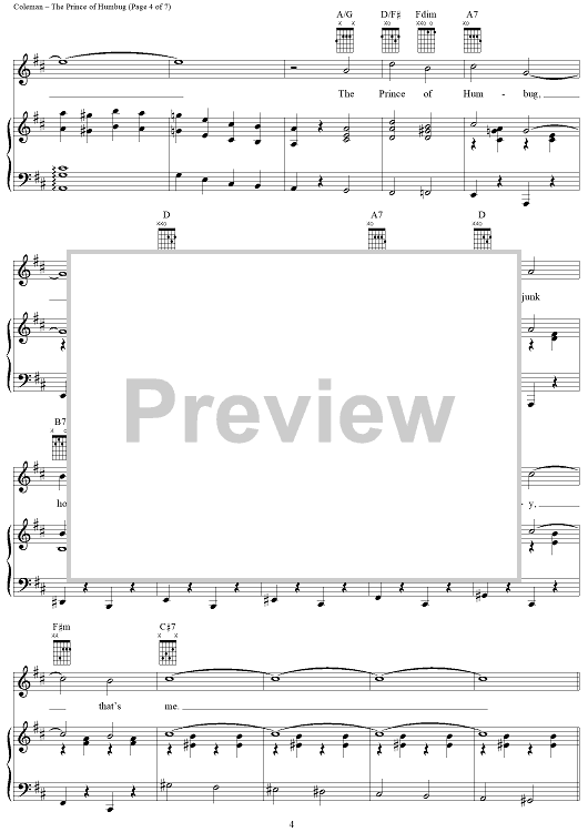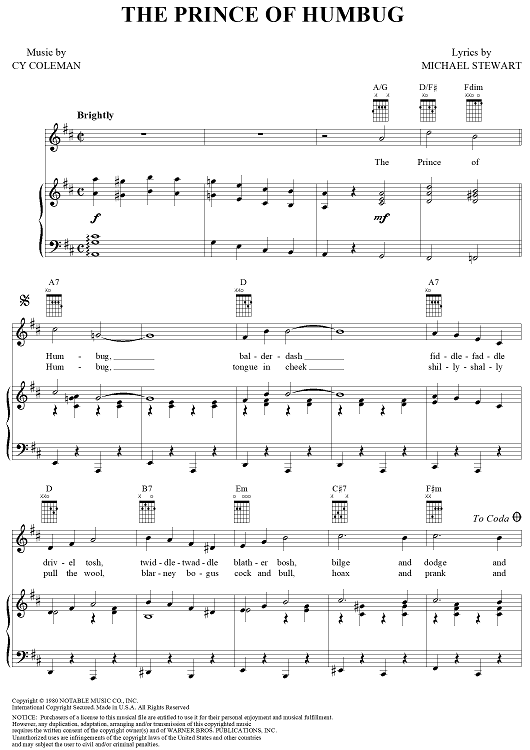 Digital Sheet Music for The Prince of Humbug by Cy Coleman, Michael Stewart scored for Piano/Vocal/Chords; id:314551
