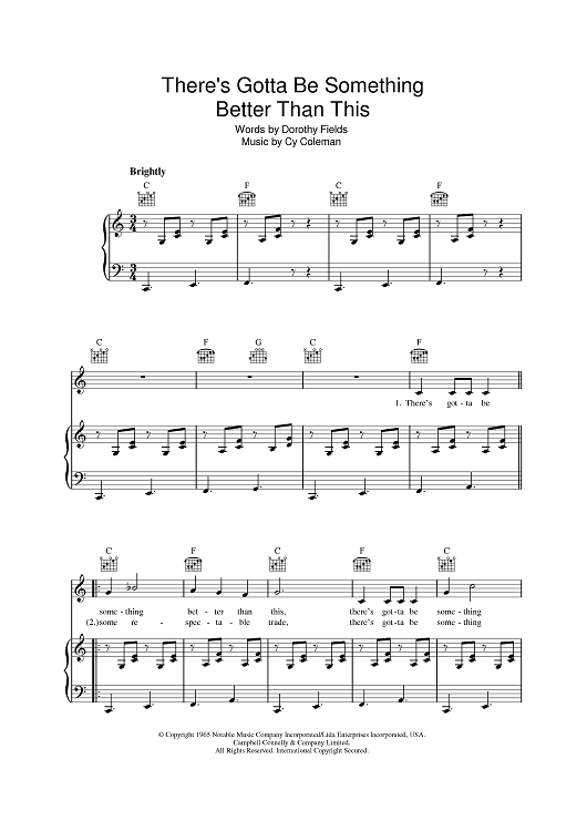 Digital Sheet Music for There's Gotta Be Something Better Than This by Cy Coleman, Dorothy Fields scored for Piano/Vocal/Chords; id:388096