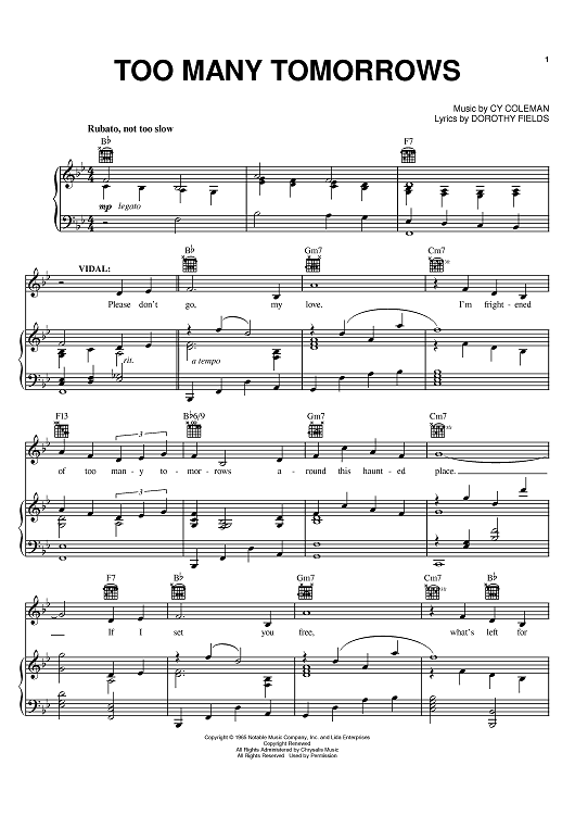 Digital Sheet Music for Too Many Tomorrows by Cy Coleman, Dorothy Fields scored for Piano/Vocal/Chords; id:402126