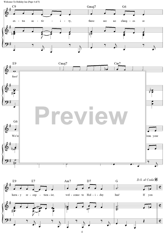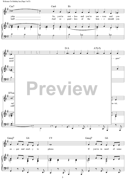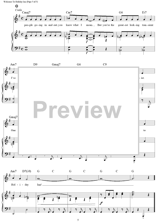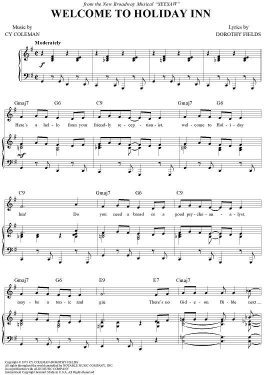 Digital Sheet Music for Welcome To Holiday Inn by Cy Coleman, Dorothy Fields scored for Piano/Vocal/Chords; id:272229