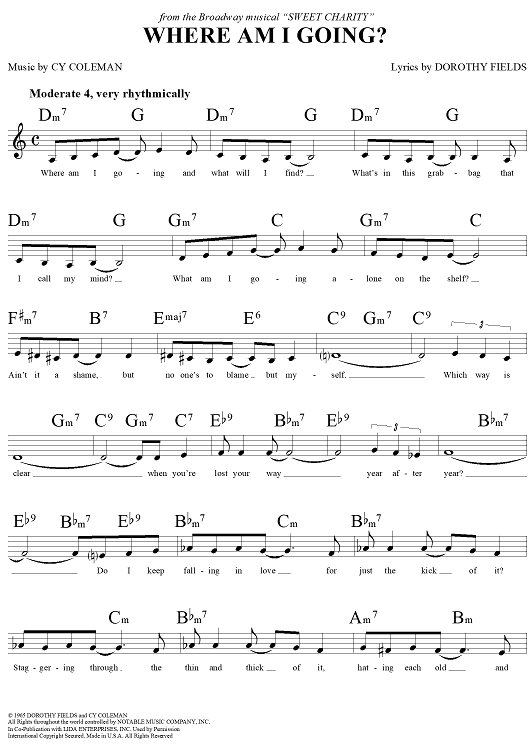 Digital Sheet Music for Where Am I Going? by Cy Coleman, Dorothy Fields scored for Lead Sheet; id:271933