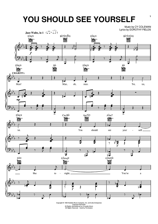Digital Sheet Music for You Should See Yourself by Cy Coleman, Dorothy Fields scored for Piano/Vocal/Chords; id:402127