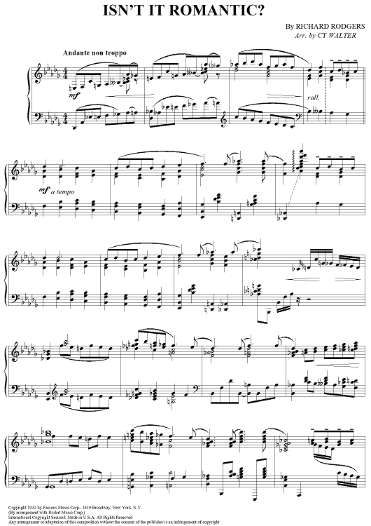 Digital Sheet Music for Isn't It Romantic? by Richard Rodgers, Cy Walter scored for Piano Solo; id:365160