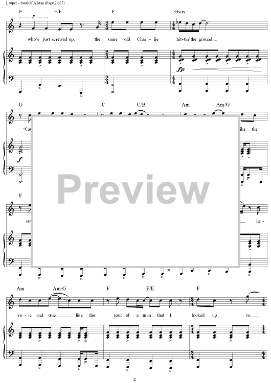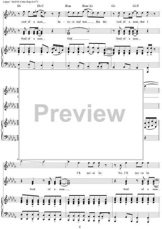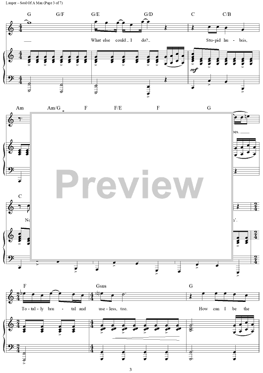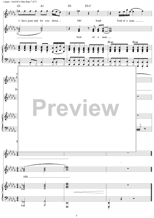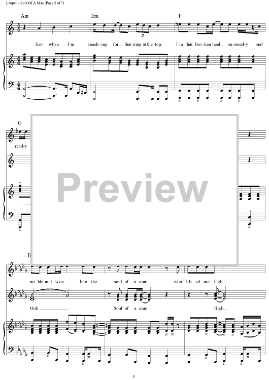 Digital Sheet Music for Soul Of A Man by Cyndi Lauper, Stephen Oremus scored for Piano/Vocal/Chords; id:436615