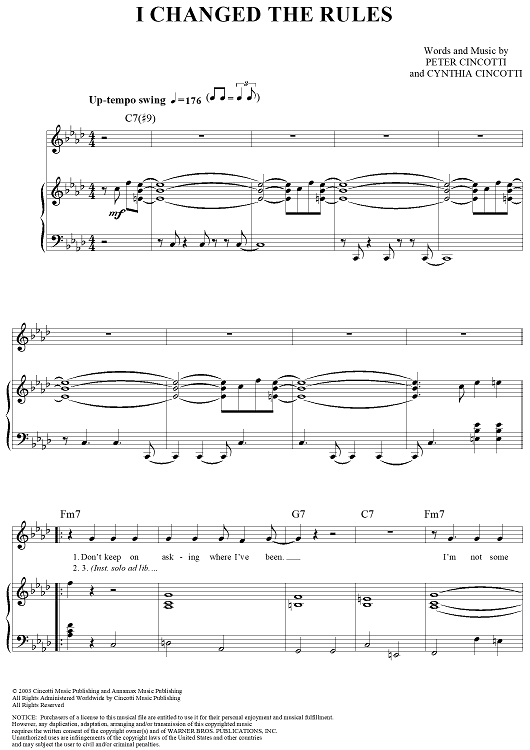 Digital Sheet Music for I Changed the Rules by Peter Cincotti, Cynthia Cincotti scored for Piano/Vocal/Chords; id:305326