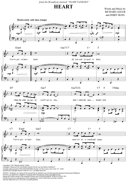 Digital Sheet Music for Heart by Jerry Ross, Richard Adler scored for Piano/Vocal/Chords; id:124394