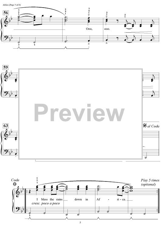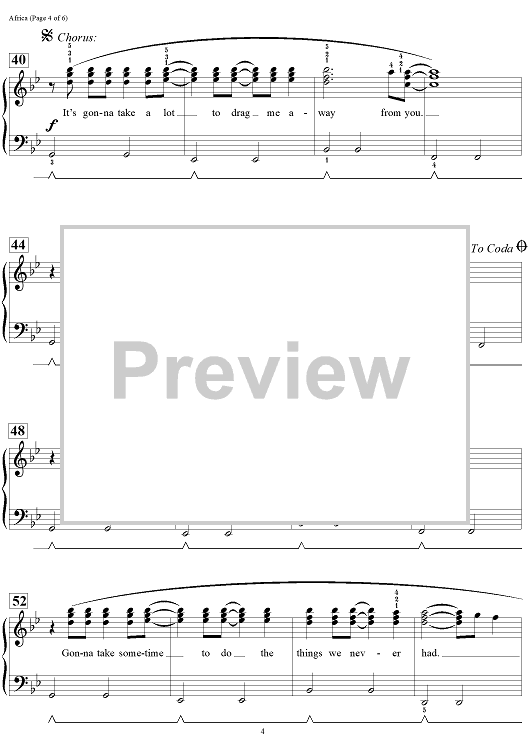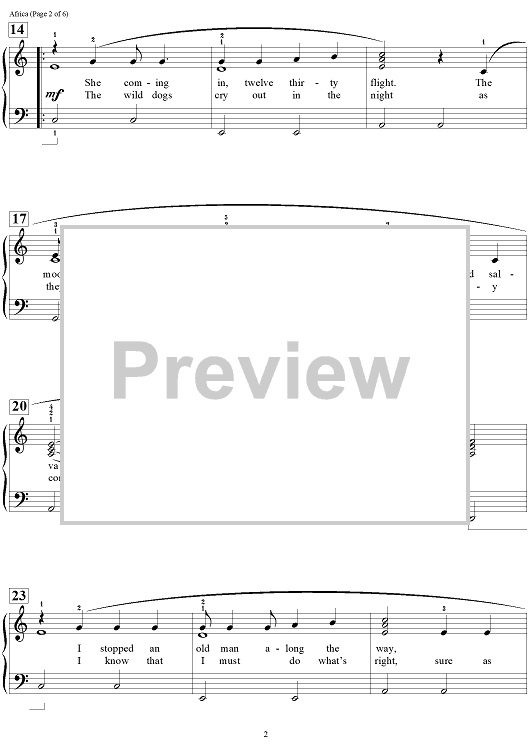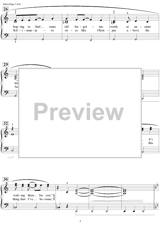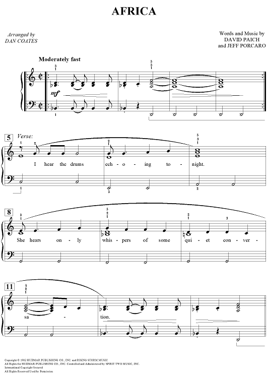 Digital Sheet Music for Africa by Dan Coates, David Paich, Jeff Porcaro scored for Piano; id:462962