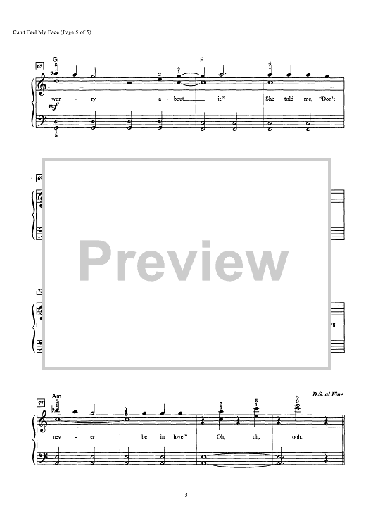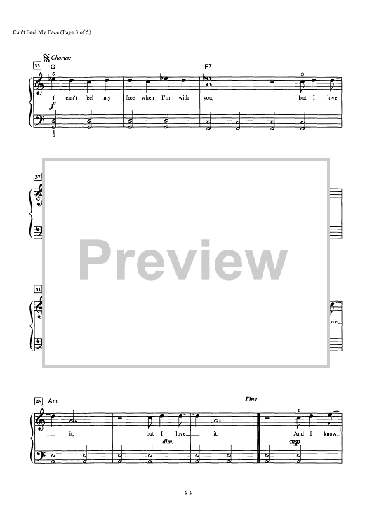 Digital Sheet Music for Can't Feel My Face by Dan Coates, Max Martin, Peter Svensson, Savan Kotecha, Ali Payami, Abel Tesfaye, The Weeknd scored for Easy Piano/Vocal/Chords; id:466686