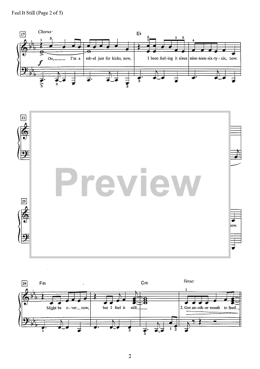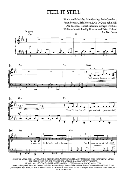 Digital Sheet Music for Feel It Still by Dan Coates, William Garrett, Brian Holland, Freddie Gorman, Georgia Dobbins, Robert Bateman, John Hill, Portugal. The Man, Zachary Carothers, John Gourley, Kyle O'Quin, Jason Sechrist, Asa Taccone, Erick Howk scored for Big Note Piano; id:466819