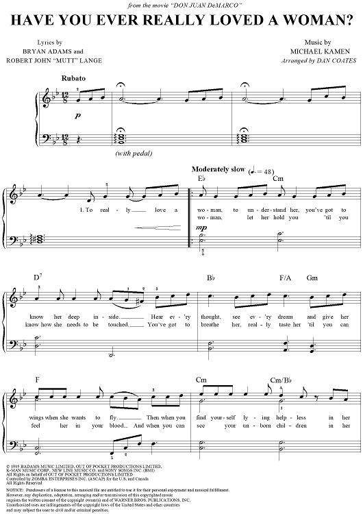 "Have You Ever Really Loved A Woman?" Sheet Music by Bryan Adams