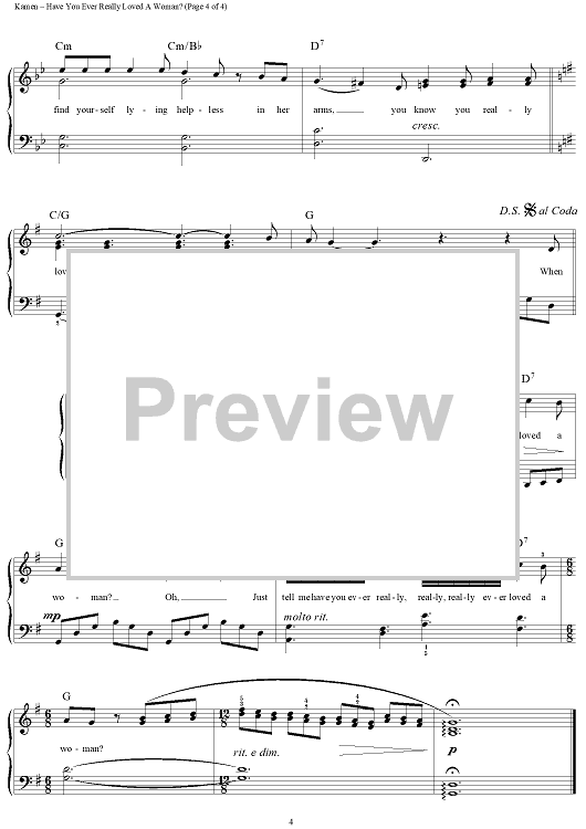Digital Sheet Music for Have You Ever Really Loved A Woman? by Dan Coates, Bryan Adams, Michael Kamen, Robert Lange scored for Easy Piano/Vocal; id:112372