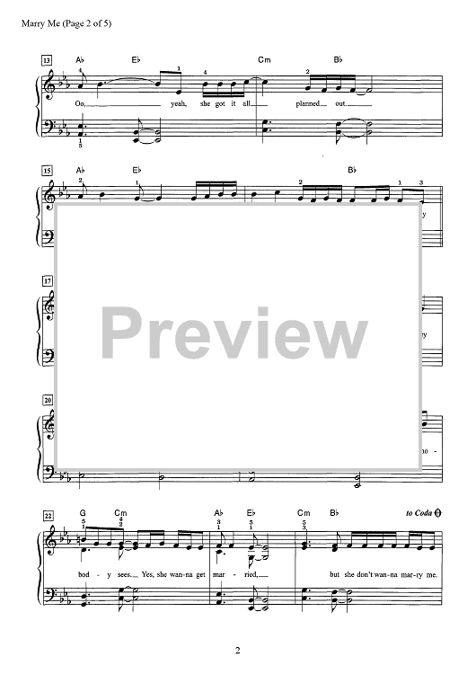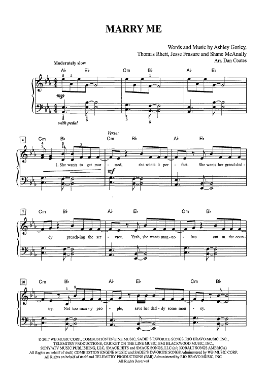 Digital Sheet Music for Marry Me by Dan Coates, Shane McAnally, Ashley Gorley, Thomas Rhett, Jesse Frasure scored for Easy Piano/Vocal/Chords; id:466827
