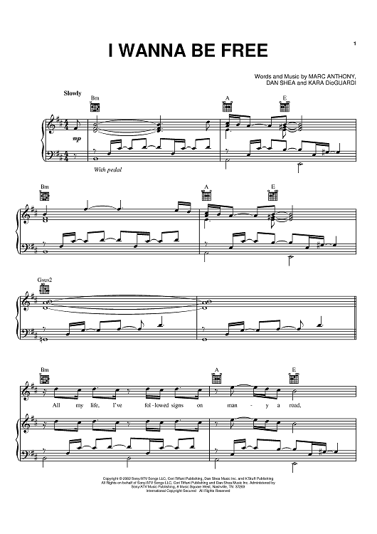 "I Wanna Be Free" Sheet Music by Marc Anthony