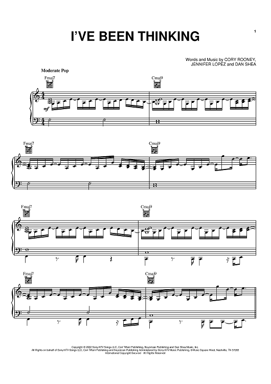 Digital Sheet Music for I've Been Thinking by Jennifer Lopez, Dan Shea, Cory Rooney scored for Piano/Vocal/Chords; id:371384