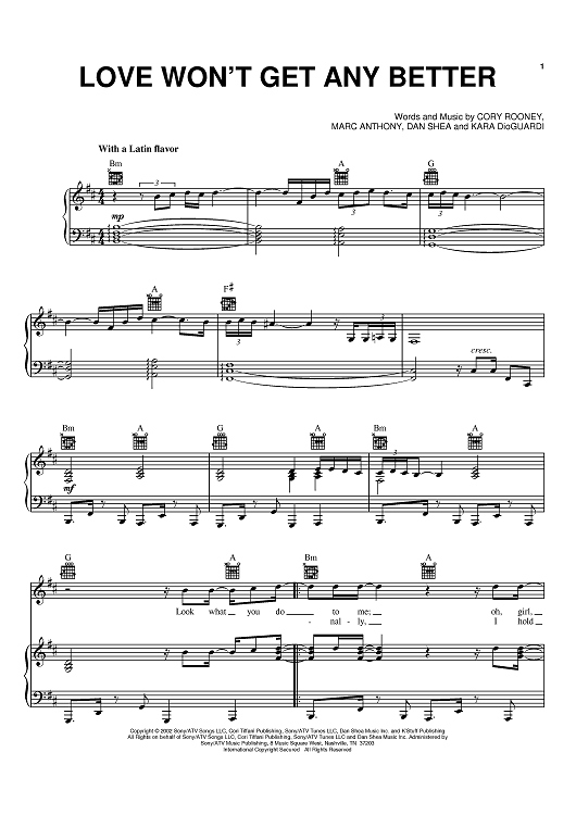 Digital Sheet Music for Love Won't Get Any Better by Marc Anthony, Dan Shea, Cory Rooney scored for Piano/Vocal/Chords; id:370325