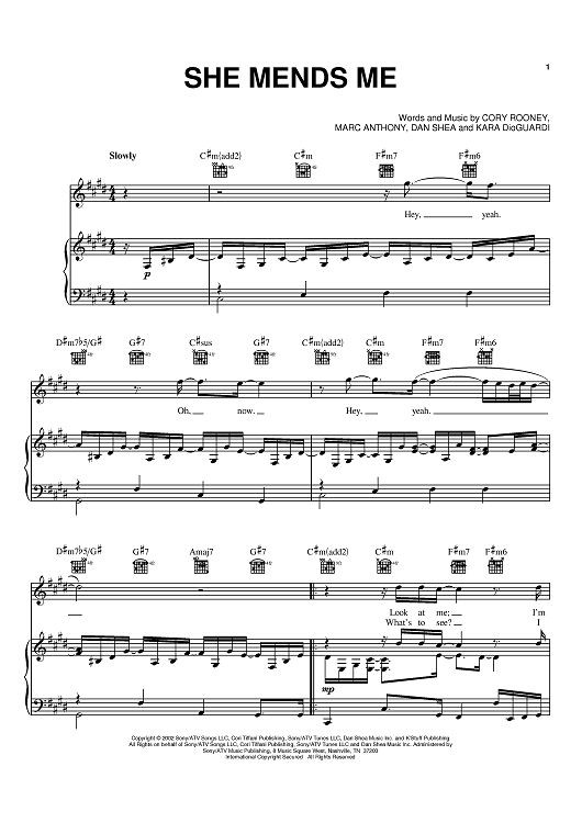 Digital Sheet Music for She Mends Me by Marc Anthony, Dan Shea, Cory Rooney scored for Piano/Vocal/Chords; id:370326