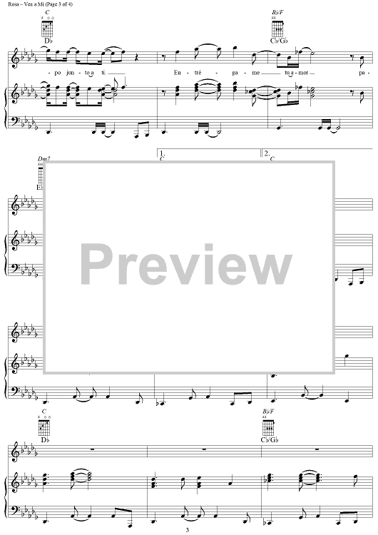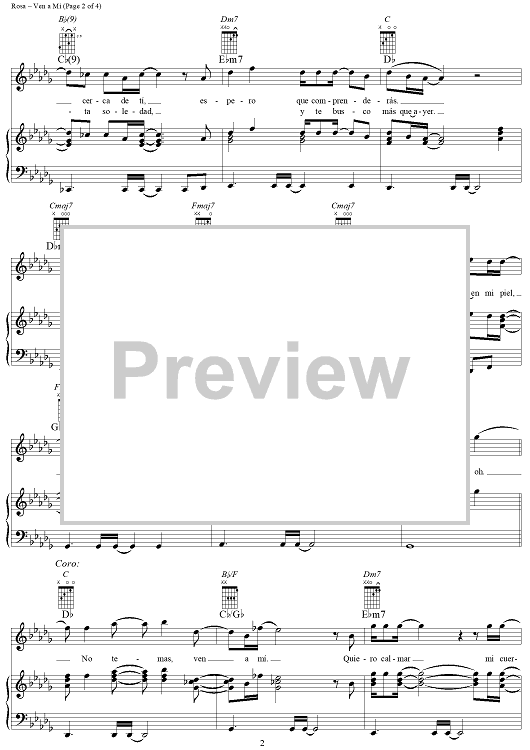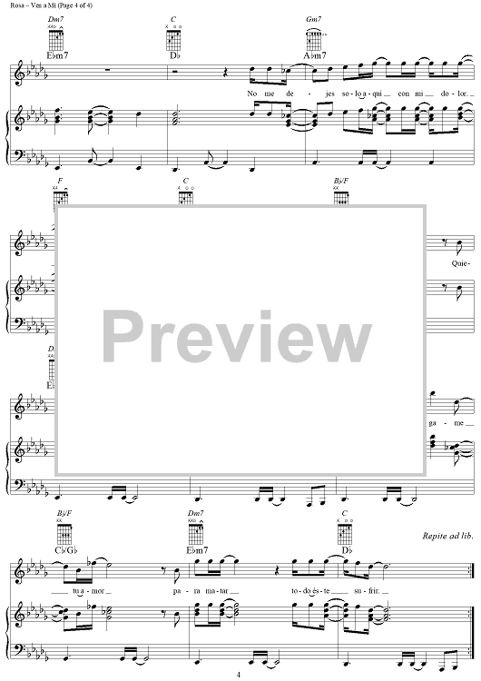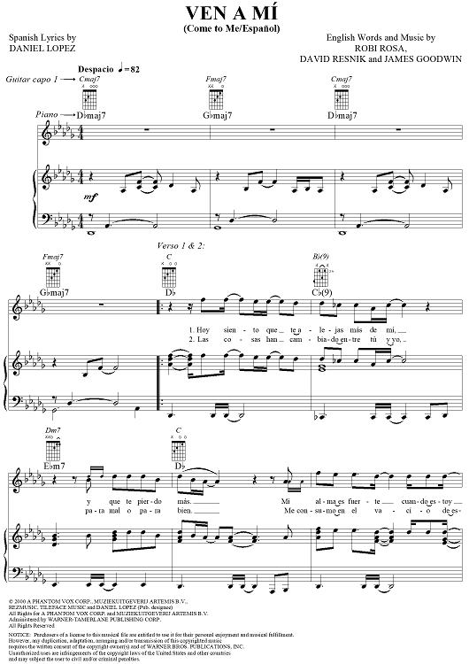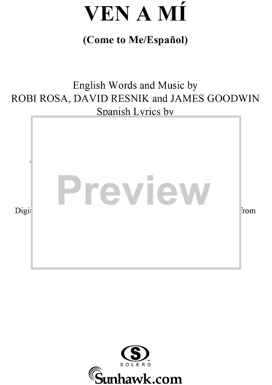 Digital Sheet Music for Ven a Mí (Come to Me/Español) by Robi Rosa, Ricky Martin, David Resnik, James Goodwin, Daniel Lopez scored for Piano/Vocal/Chords; id:288283
