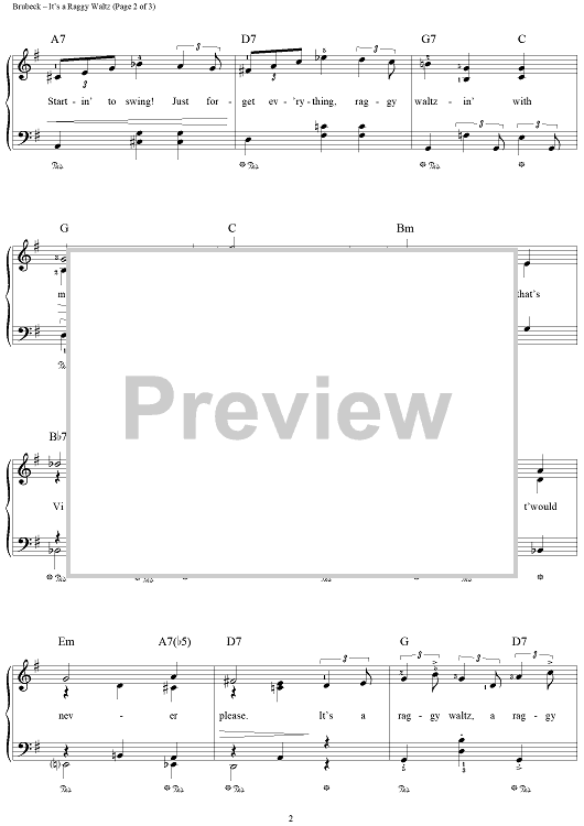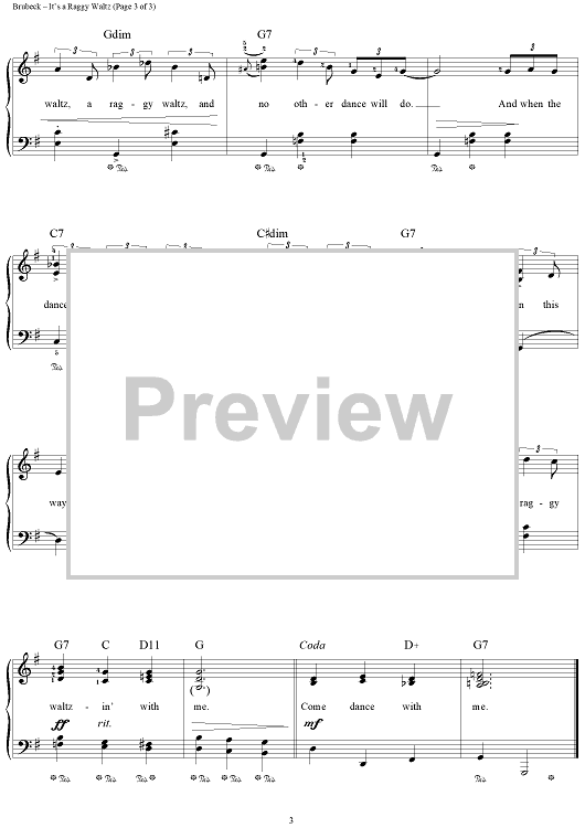 "It's a Raggy Waltz" Sheet Music by Dave Brubeck