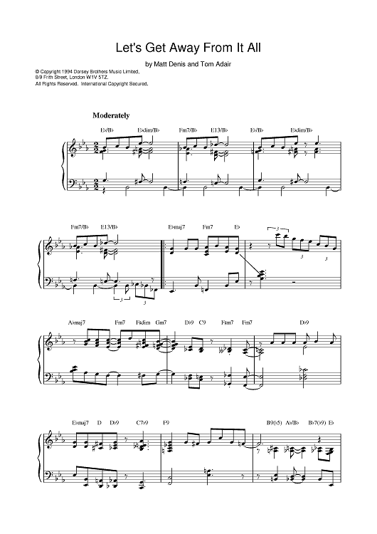 Digital Sheet Music for Lets Get Away From It All by Frank Sinatra, Tommy Dorsey, Matt Dennis, Dave Brubeck, Tom Adair scored for Piano; id:380657