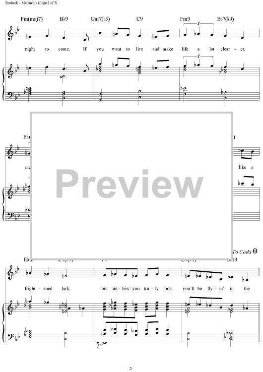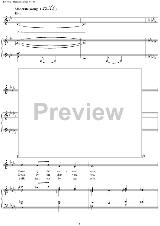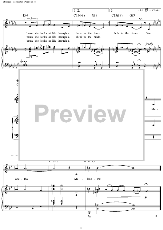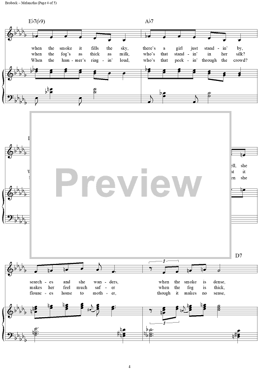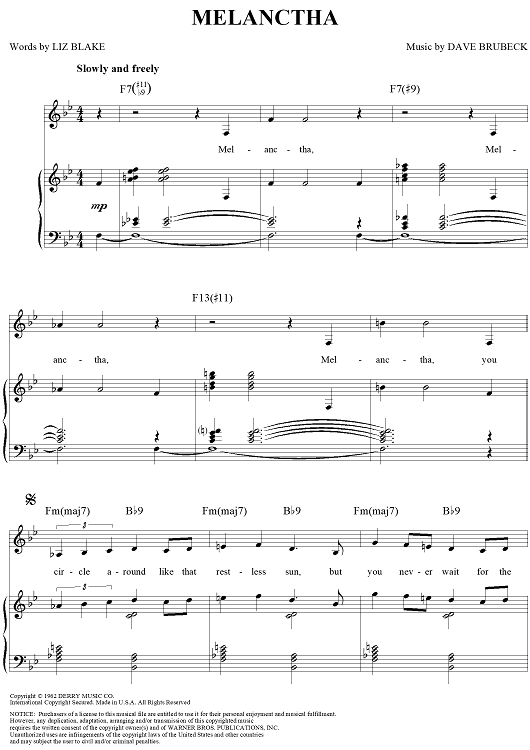 Digital Sheet Music for Melanctha by Dave Brubeck, Little Blake scored for Piano/Vocal/Chords; id:275551