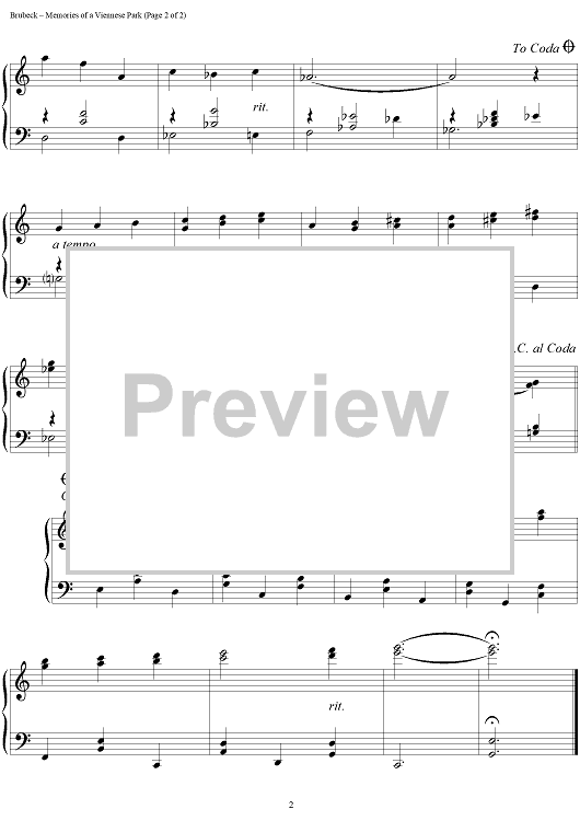 Digital Sheet Music for Memories of a Viennese Park by Dave Brubeck scored for Piano Solo; id:275556